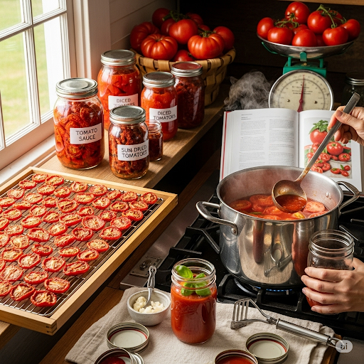 ✨ بهذه الطرق المختلفة، يمكنك الاستمتاع بنكهة الطماطم الطازجة أو المحمصة أو المجففة طوال العام، دون القلق من فسادها أو نفاد موسمها.